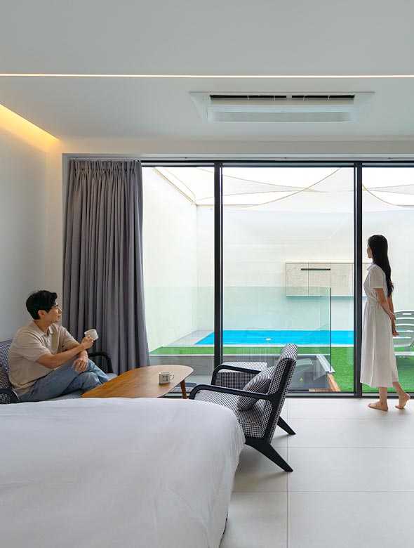 · 퇴실 시 저희 직원과 함께 객실 시설 및 집기를 확인하는 절차에 협조해 주셔야 합니다.